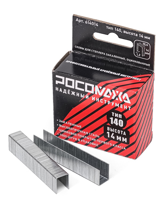 Скобы для степлера закаленные, оцинкованные (тип 140, 1000 шт./уп.), высота 6 мм "РОСОМАХА"