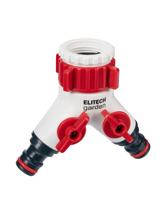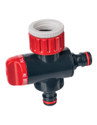 Распределитель потоков 2-х канальный с переходником д/отвода3/4"и1"сверху.Ручка вкл/выкл,подачи воды HF 005