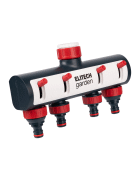 Распределитель потоков 4-х канальный с переходником 3/4"-1".Ручка вкл/выкл,подачи воды.Раб.давл:6бар HF 002