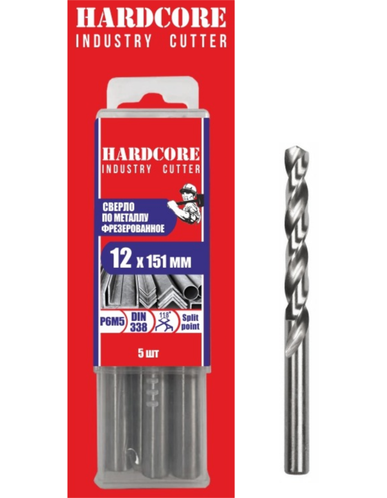 12.0х151мм 5 шт/уп Сверло по металлу фрез. Р6М5 "Hardcore" Industry cutter
