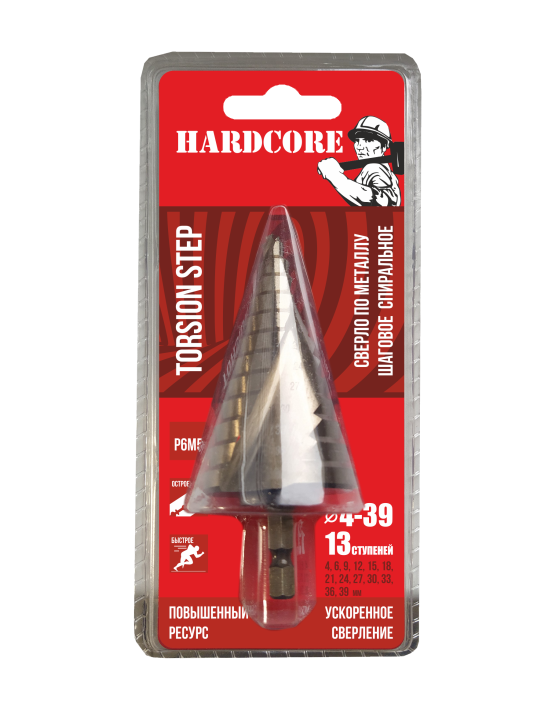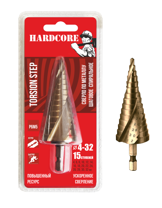 4-32 мм (15 ступ.)Р6М5 Сверло по металлу шаговое спиральное "Hardcore" Torsion step