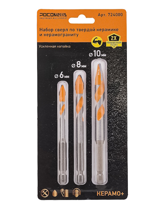 Набор сверл по твердой керамике и керамограниту (6, 8, 10 мм) "РОСОМАХА"