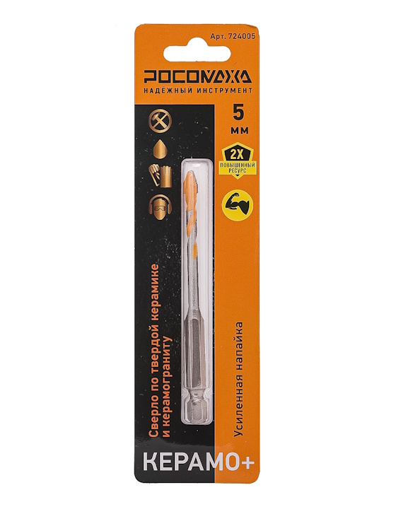 Сверло усиленное по твердой керамике и керамограниту 5 мм "РОСОМАХА"