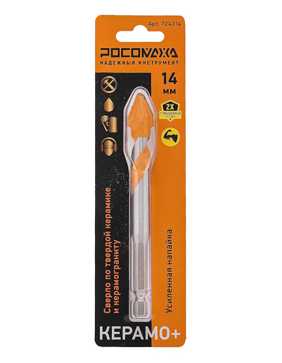 Сверло усиленное по твердой керамике и керамограниту 14 мм "РОСОМАХА"