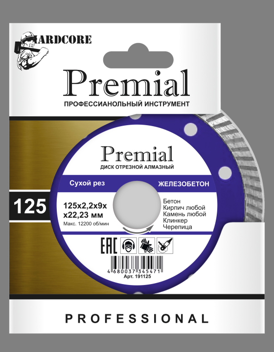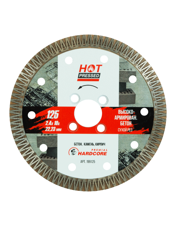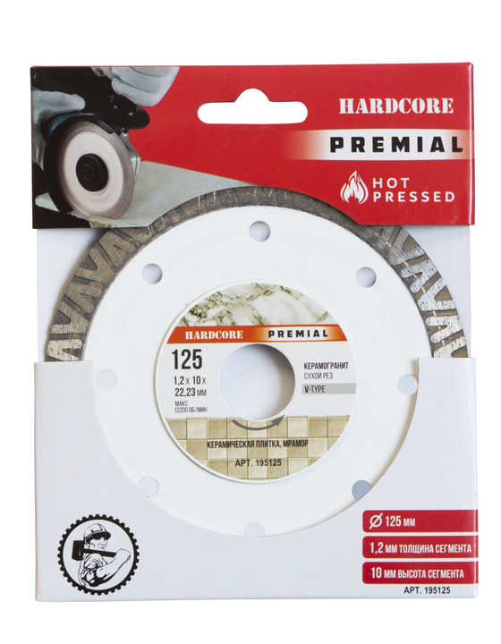Диск отр.алмазный тип V сухой рез 125х1,2х10х22,23 Hardcore Premial Керамогранит