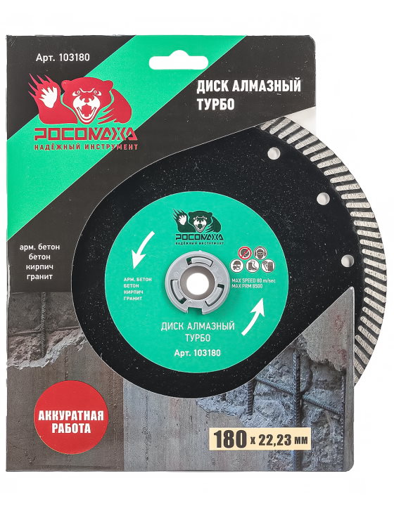 Диск отрезной алмазный ТУРБО 180*2,5 мм "РОСОМАХА"