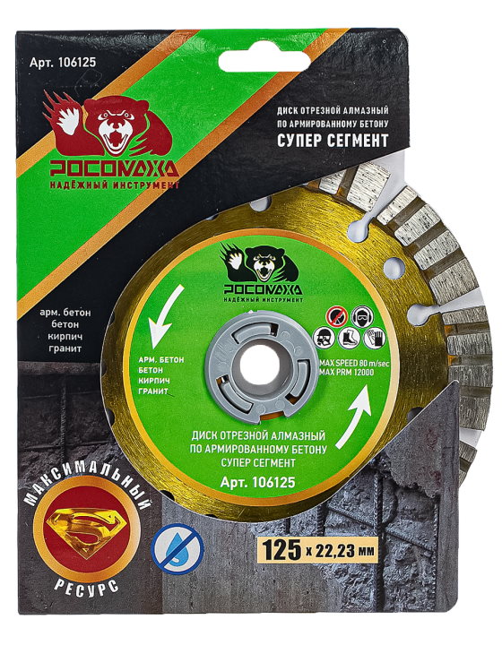 Диск отрезной алмазный по арм.бетону СУПЕР СЕГМЕНТ 125*2,2 мм "РОСОМАХА"