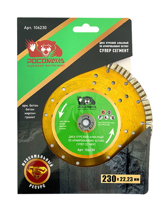 Диск отрезной алмазный по арм.бетону СУПЕР СЕГМЕНТ 230*2,8 мм "РОСОМАХА"