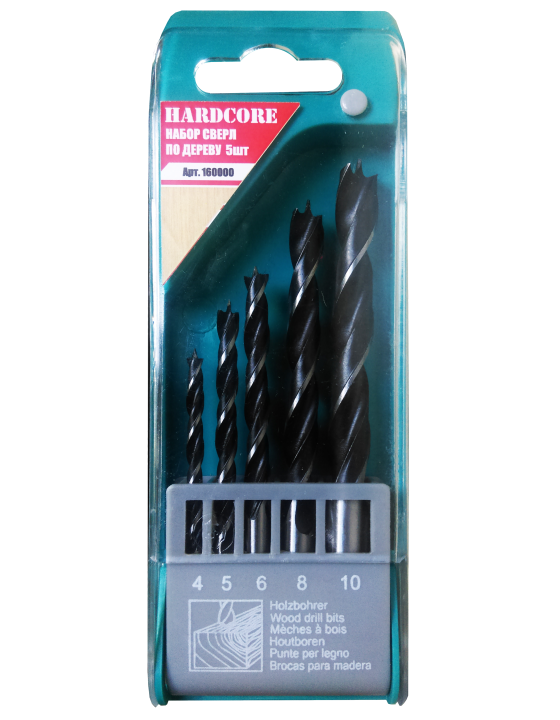 Набор сверл по дереву спиральных 5 шт (4-5-6-8-10мм) "Hardcore"