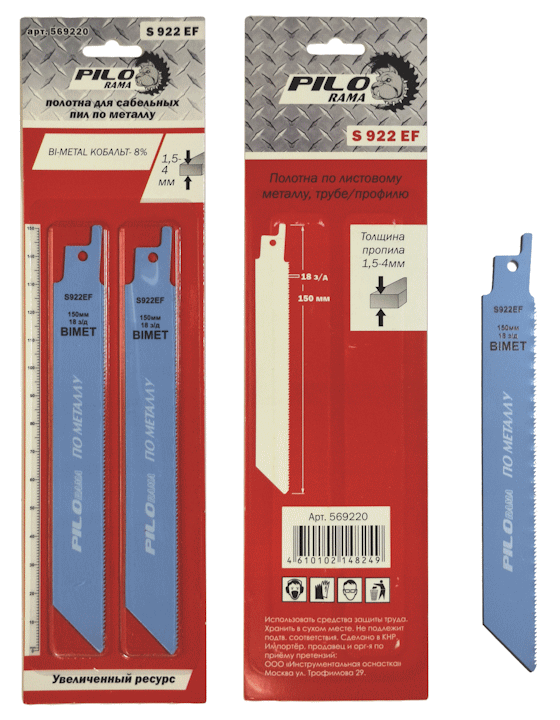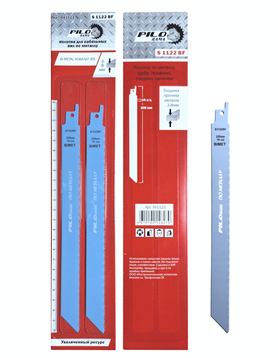 Полотна S1122BF BIM 8% Co. для саб.пилы по МЕТАЛЛУ (h=3-8мм), трубе/профилю, сэндв.пан. ?175mm. 228х19мм 14 з/д 2 шт/уп "Pilorama"
