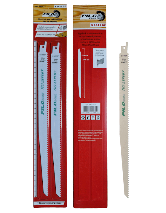 Полотна S1411DF BIM 8% Co. для саб.пилы по дереву (h=5-250мм) в т/ч с металлом, стеклопласт. 300х19мм 6 з/д не точён. Грубый попереч. распил + продол. 2 шт/уп "Pilorama"