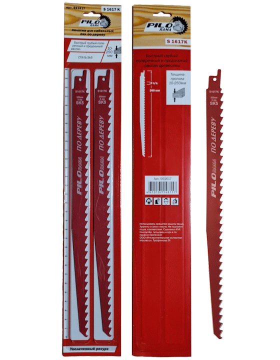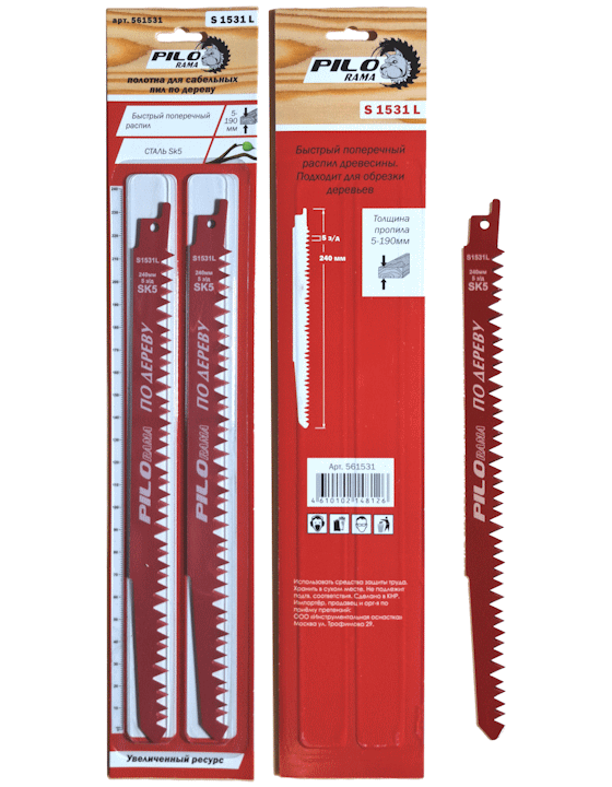Полотна S1531L для саб.пилы по дереву (h=5-190мм). 240х19мм 5 з/д точён. Быстрый попереч. распил. Сталь SK5. 2 шт/уп "Pilorama"