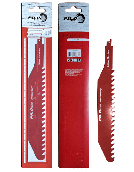 Полотно для сабельной пилы по газобетону 345х47х1,8 мм 20 зубьев 1шт/уп "Pilorama" HM
