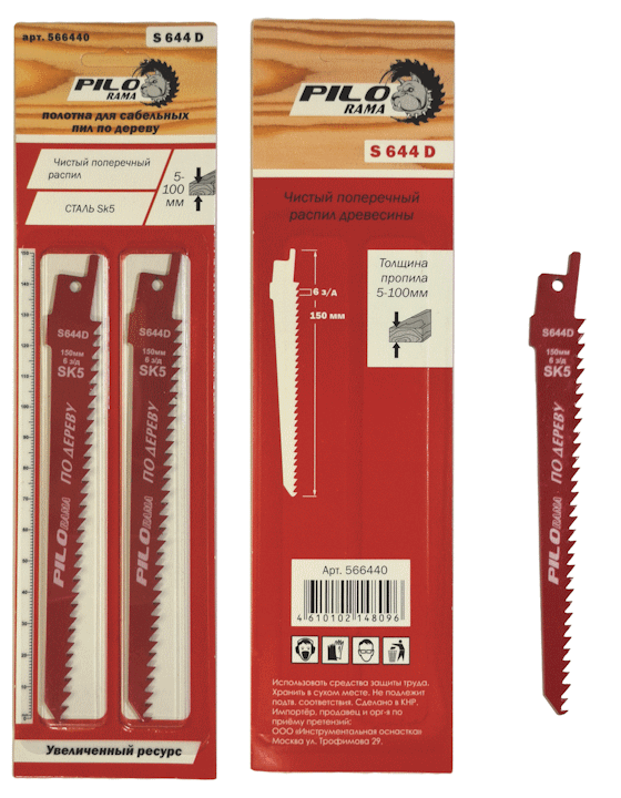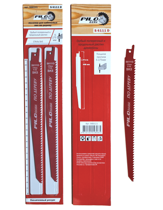 Полотна S6111D для саб.пилы по дереву (h=5-175мм). 228х19мм 6 з/д не точён. Грубый попереч. распил + продол. Сталь SK5. 2 шт/уп "Pilorama"